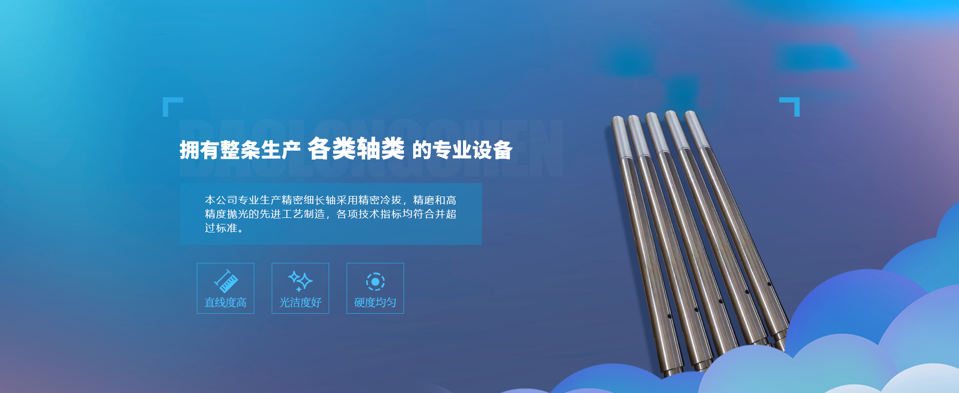 公司主營活塞桿,缸筒,空心軸,調(diào)質(zhì)高頻軸,導(dǎo)柱立柱,傳動軸,哥林柱,直線光軸,刀軸等